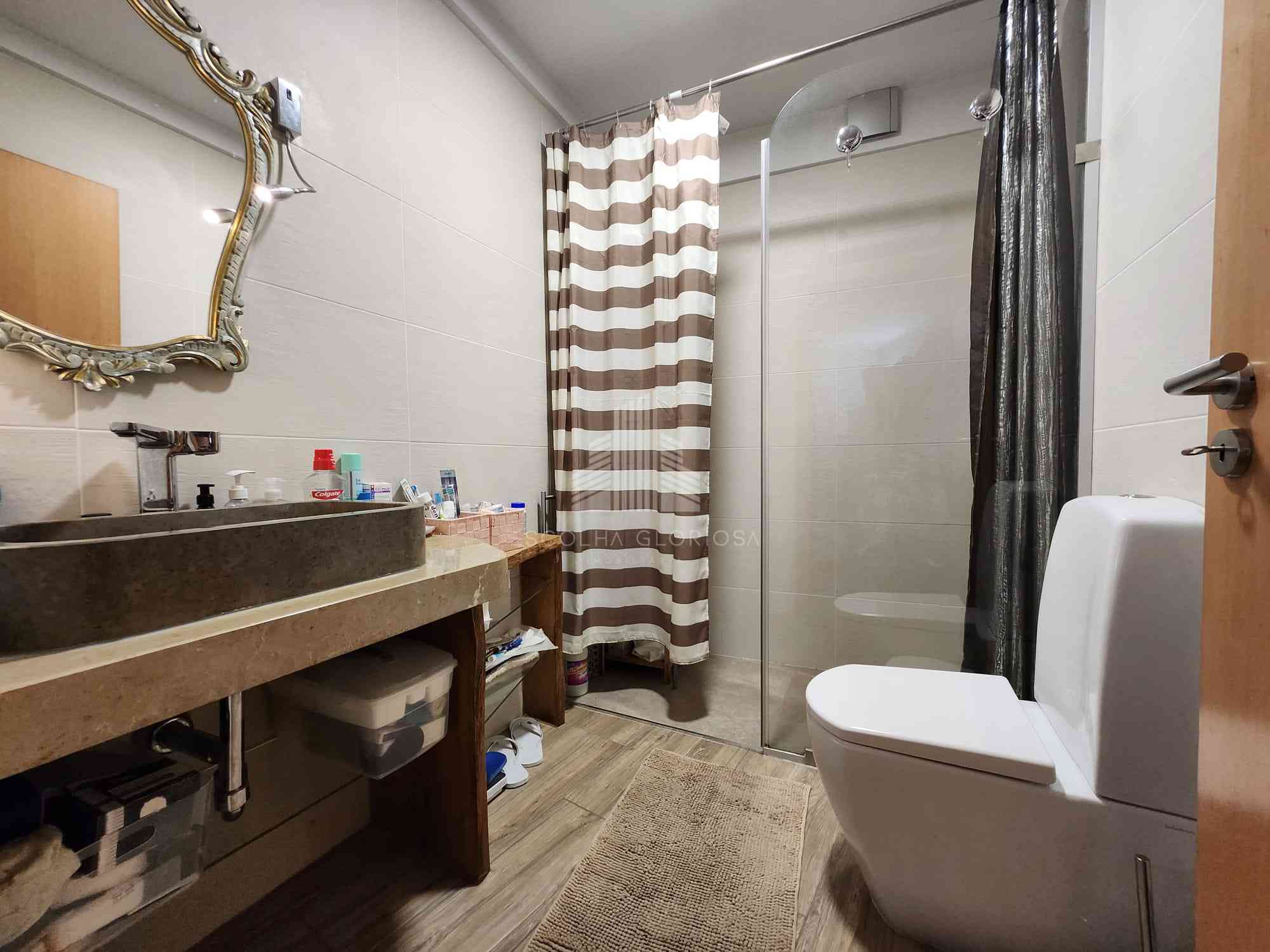 A casa de banho encontra-se totalmente equipada, oferecendo todo o conforto necessário para o dia a dia.