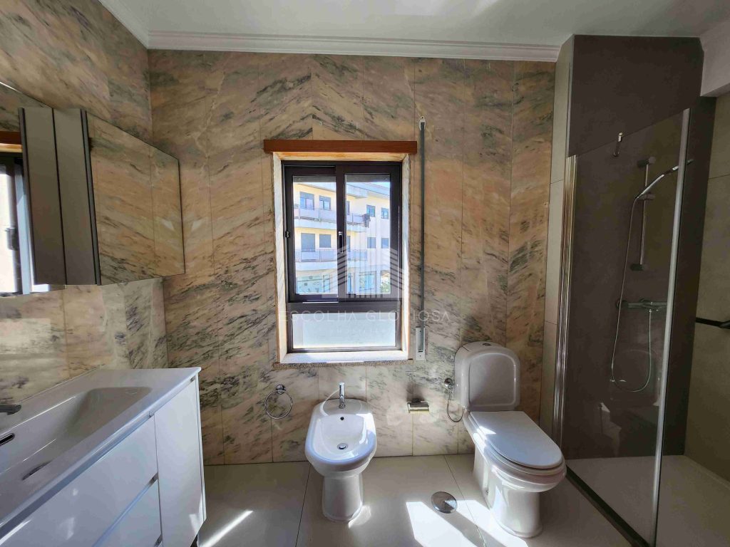 O imóvel dispõe de uma cozinha totalmente equipada, três amplos quartos com roupeiros embutidos (sendo um deles suite), uma casa de banho completa e uma espaçosa sala de estar, ideal para momentos em família.