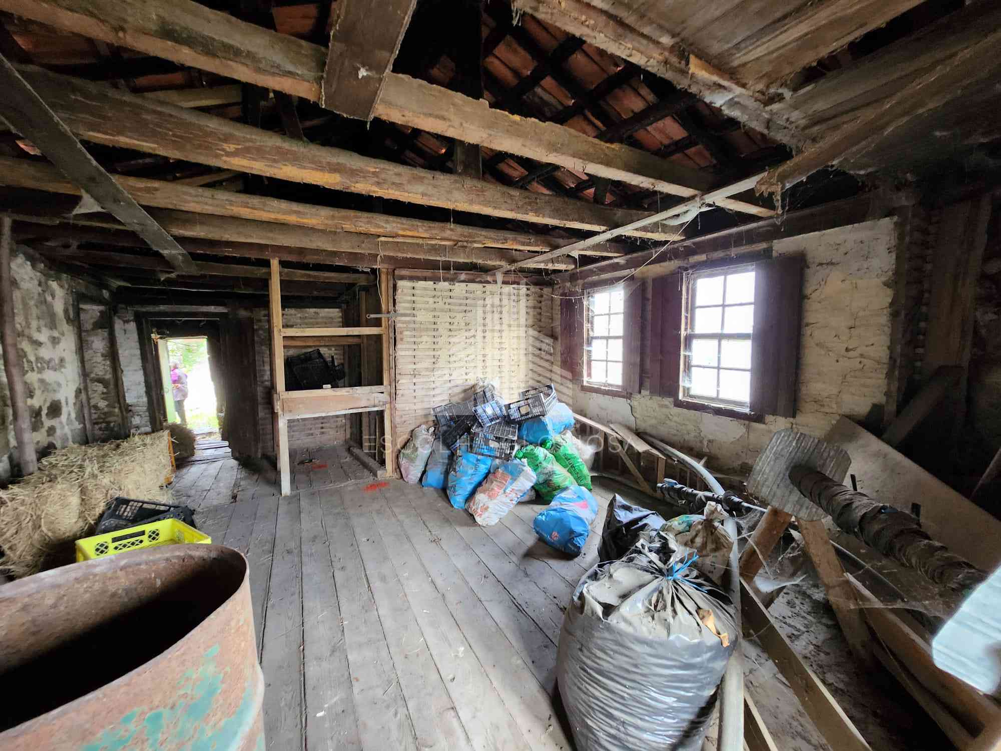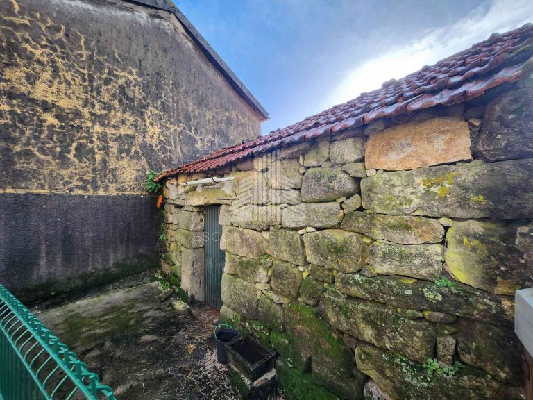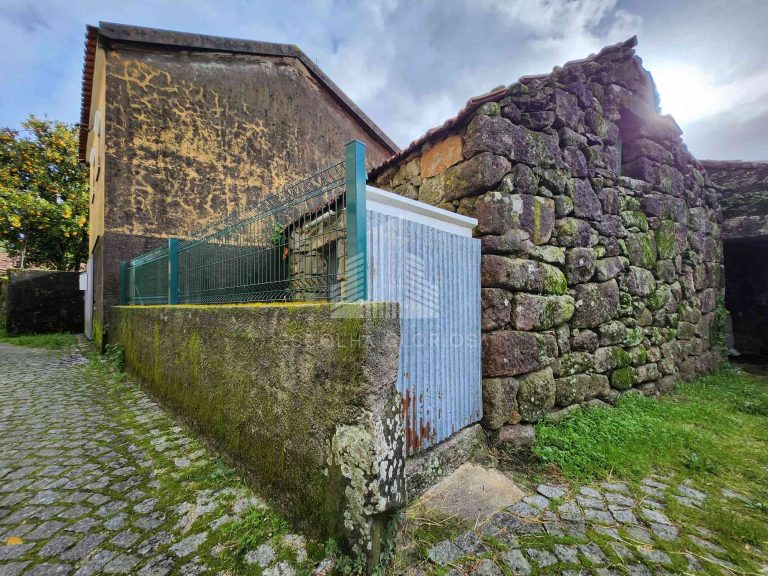 No piso inferior tem garagem e uma divisão ampla, atualmente usada como corrais, ideal para transformar no que quiser, desde área habitacional, arrumos, oficina ou zona de lazer.