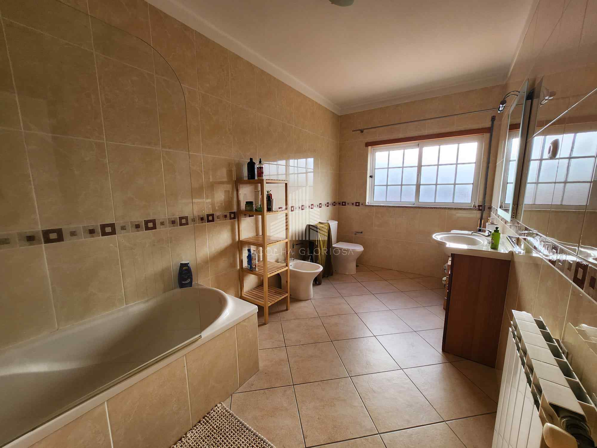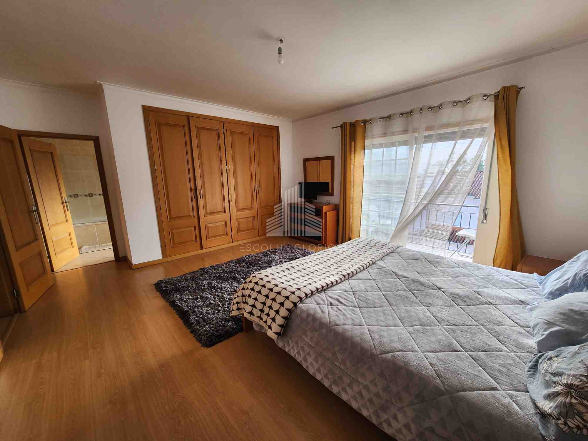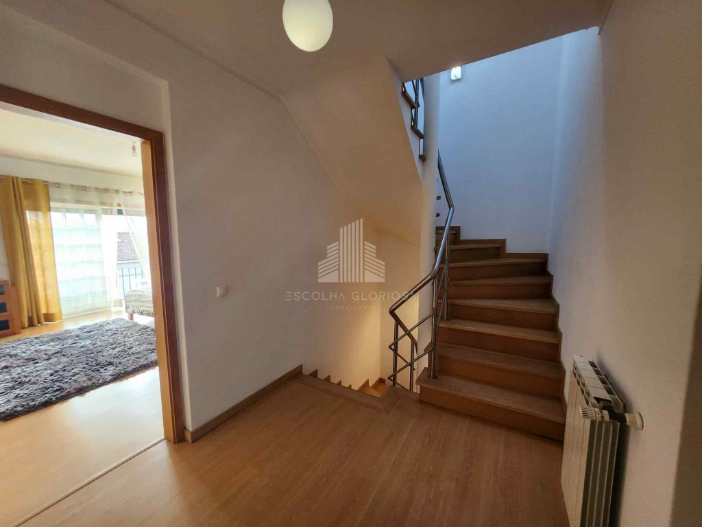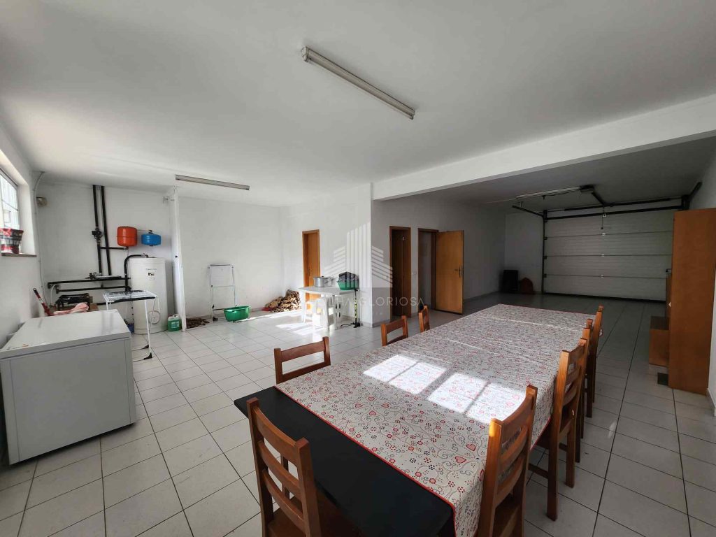Garagem ampla com excelente capacidade de arrumação, casa de banho de apoio e acesso direto à parte traseira da moradia, onde poderá desfrutar de um belíssimo jardim com churrasqueira — ideal para os dias de verão.