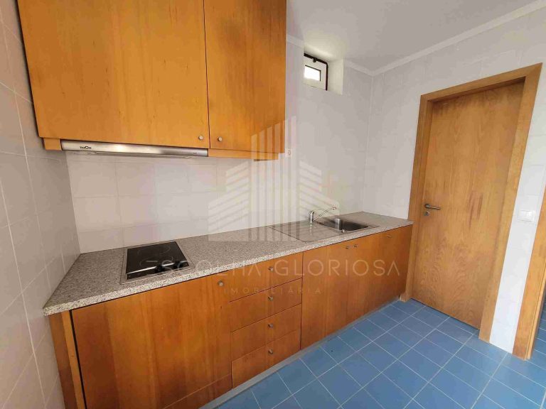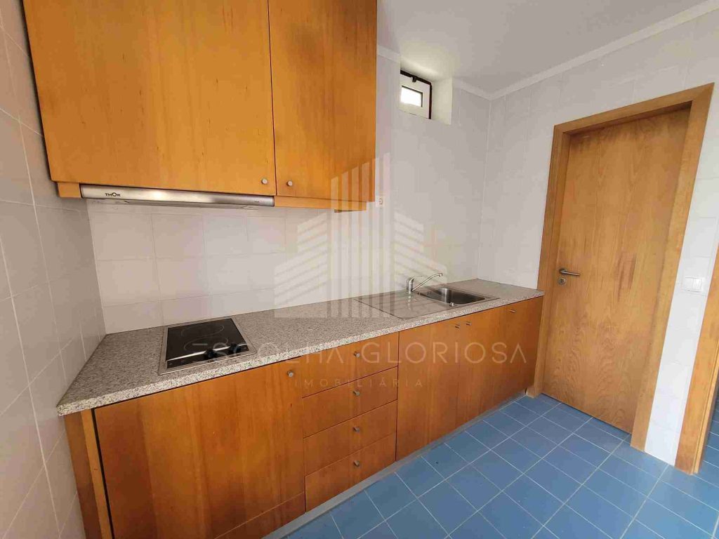 No primeiro andar, encontramos uma cozinha compacta com despensa, uma casa de banho e três salas.