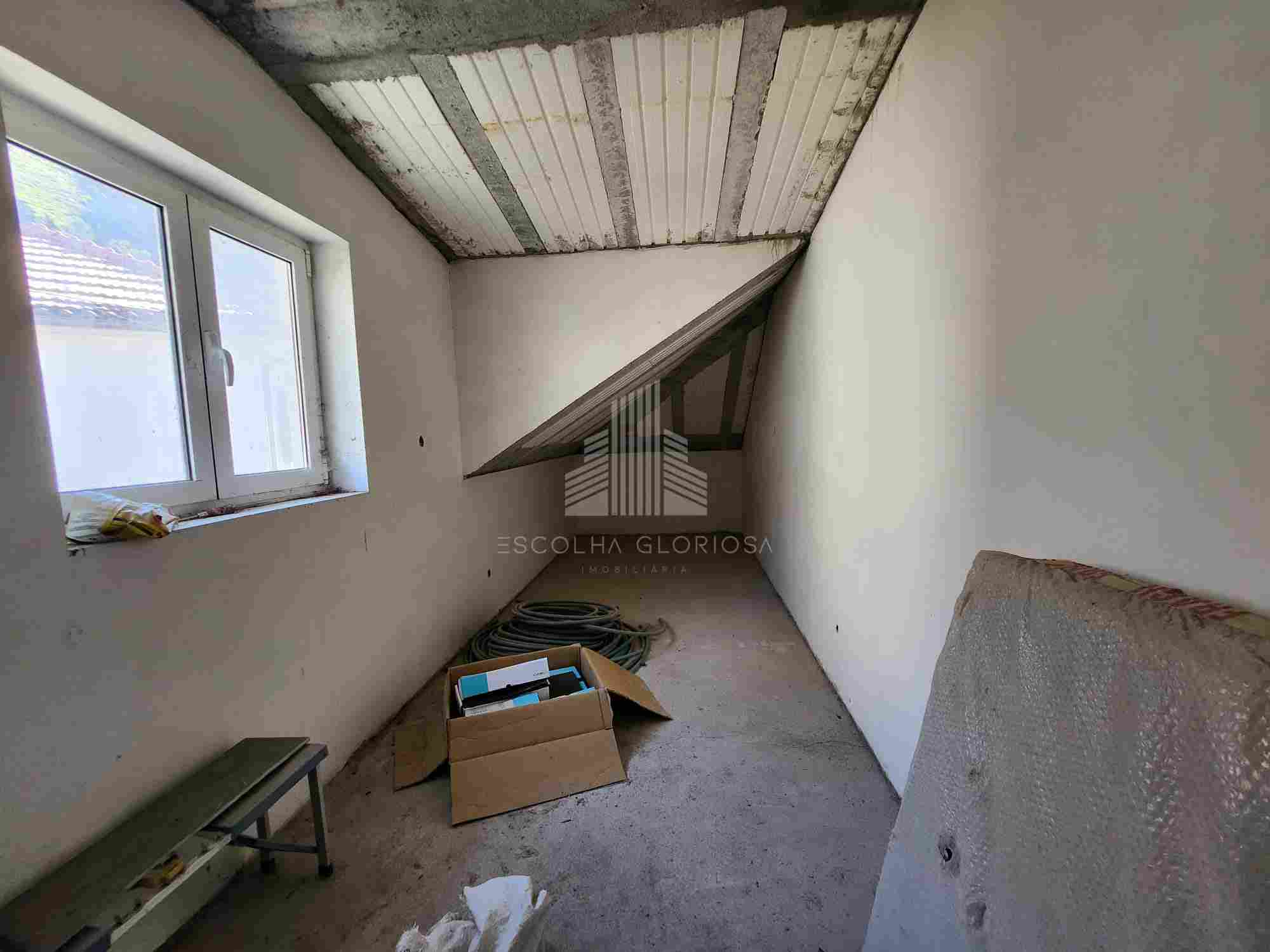 Piso superior: Três quartos generosos e uma divisão adicional preparada para instalação de uma casa de banho.