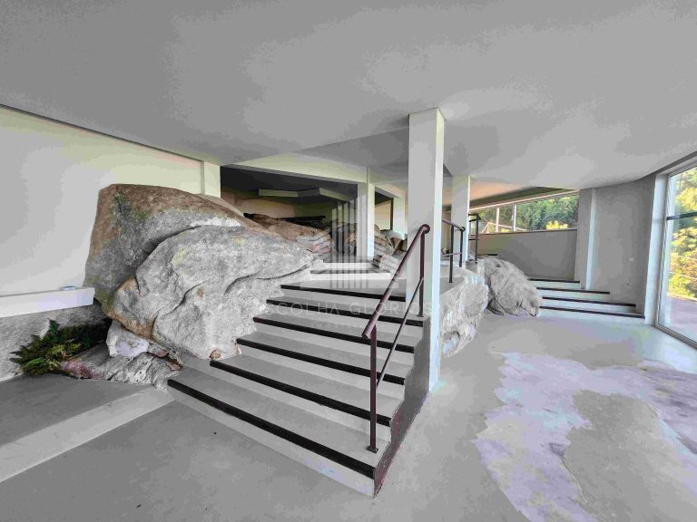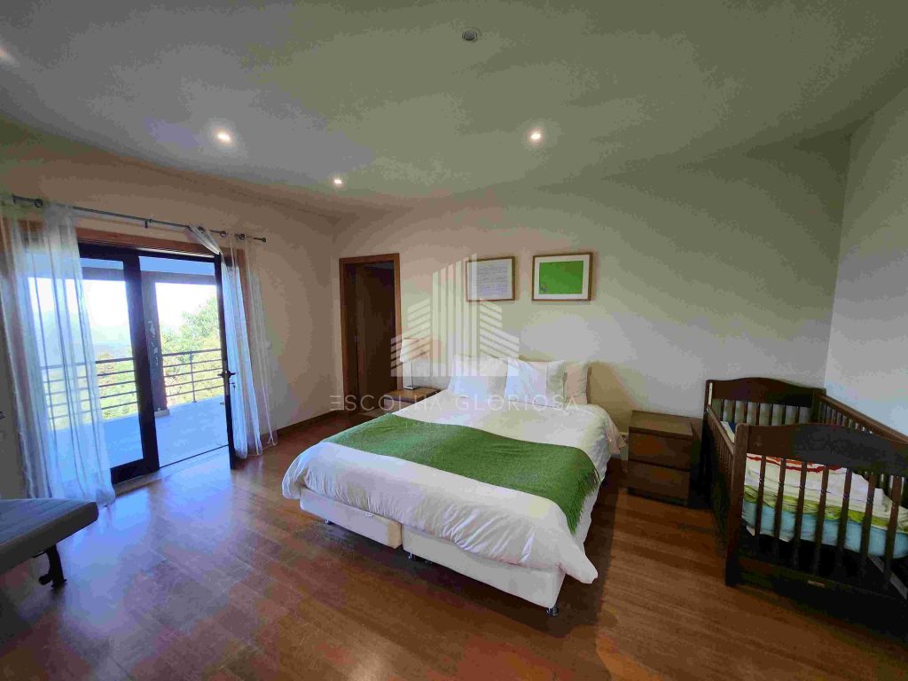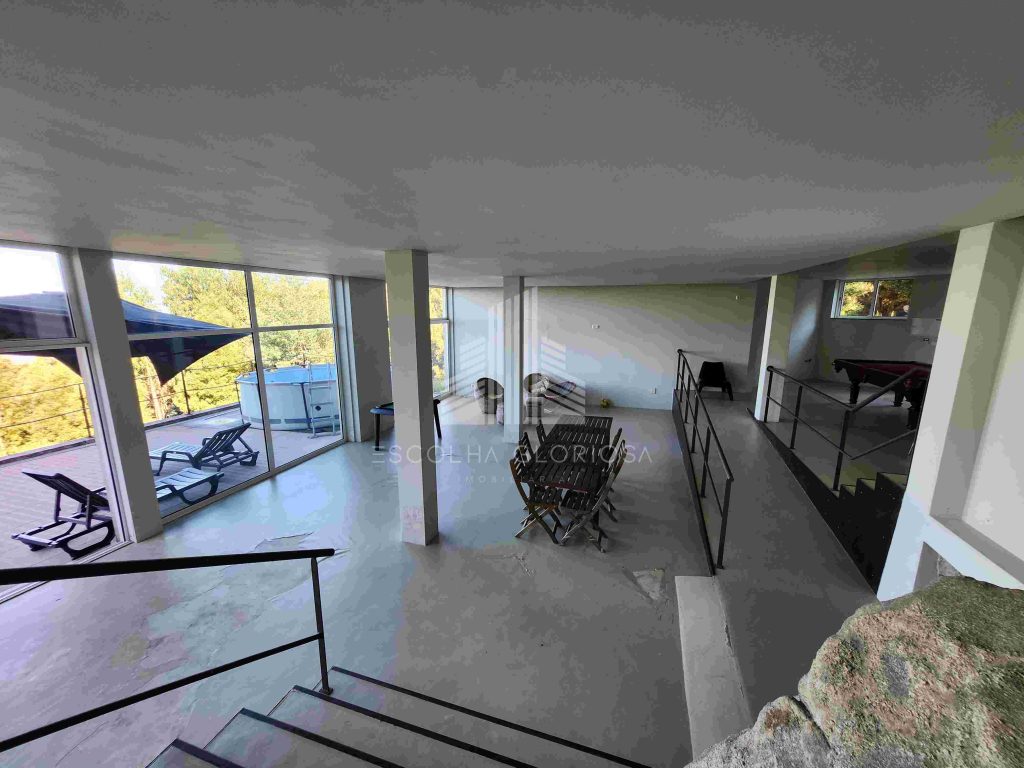 A quinta oferece uma cozinha ampla e moderna, uma prática lavandaria, uma sala de estar acolhedora com uma vista panorâmica deslumbrante para a serra, além de um piso inferior com área de jogos e acesso direto a um terraço, ideal para a instalação de uma elegante piscina.