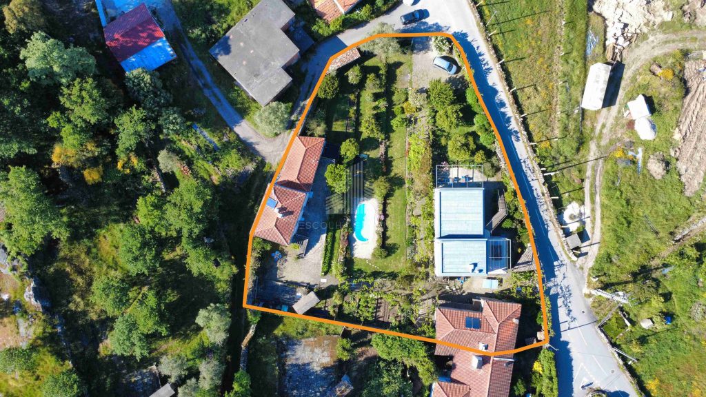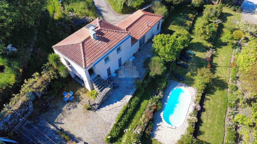 A propriedade é composta por três edifícios independentes, cuidadosamente distribuídos por um terreno ajardinado com piscina, zona de estacionamento e muros em pedra que garantem privacidade.