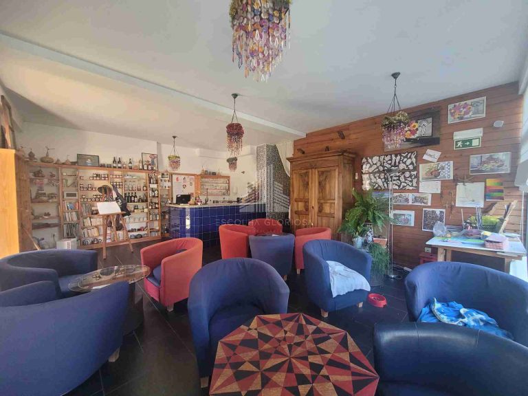 O piso superior é ocupado por uma cozinha ampla, equipada com todos os recursos necessários para funcionamento profissional, complementada por um terraço com vista panorâmica e ligação direta ao andar inferior.